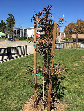 18 trees: Coast Live Oak, Netleaf Oak, Western Sycamore, Desert Willow, Flame Bottle Tree, and Eucalyptus (Roberta Conroy)